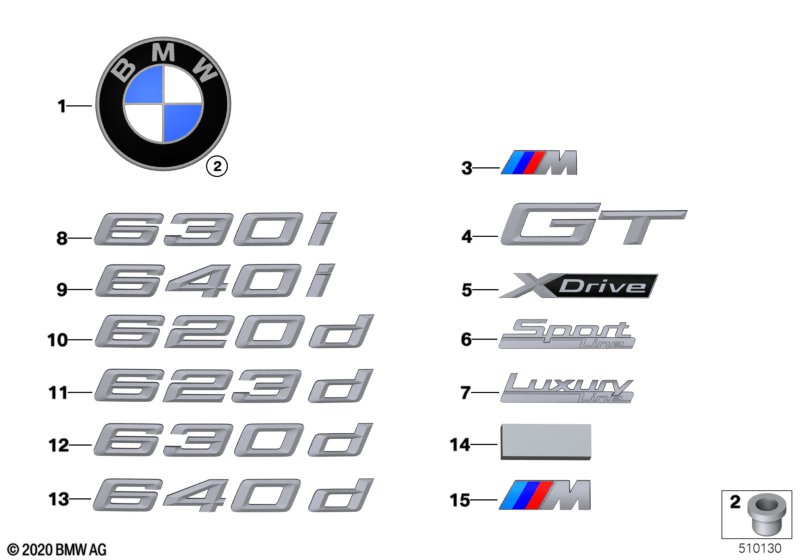 Надпись BMW 51147430760 — оригинальная запасная часть для автомобилей BMW серий G30, G31, G32, F52.