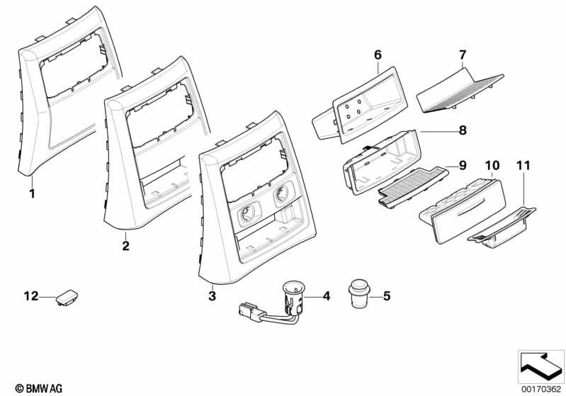 Пепельница Зд BMW 51167138525 — оригинальная запасная часть для автомобилей BMW серий E90, E91, E90N, E91N.