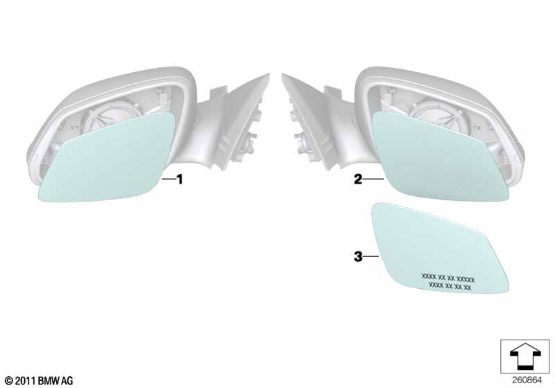стекло зеркала правое! с кроншт. асфер. с подогр.\BMW E60/F20/30/31/35/07/10/11/18/06/12 08>