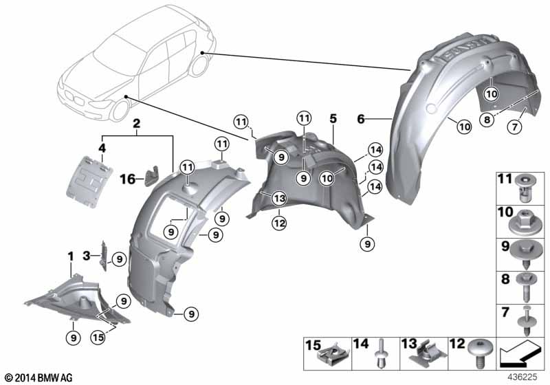 Заглушка подкрылка BMW 1-Series 11-19 / 3-Series 11-19 (Спереди/ Справа=Слева)